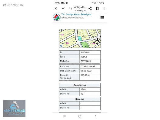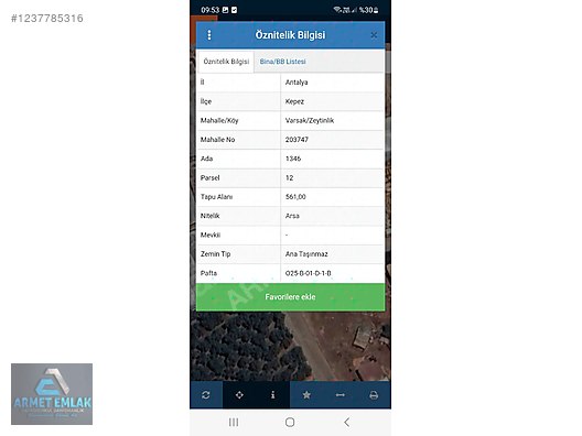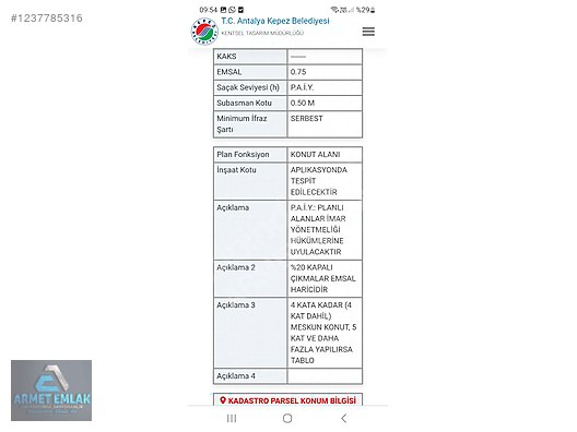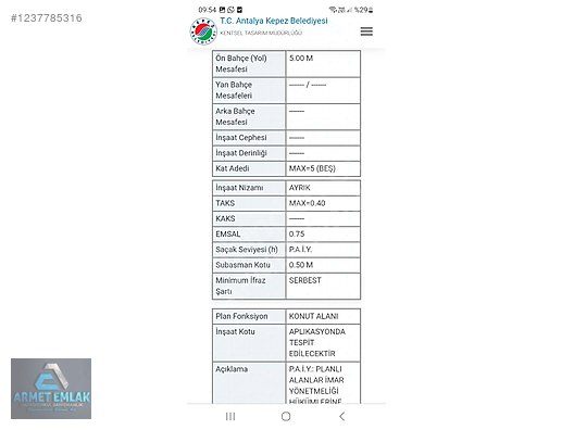 SATILIK ANTALYA VARSAK'TA 561 M2 PARK ALANINA CEPHE KONUT ARSASI.
